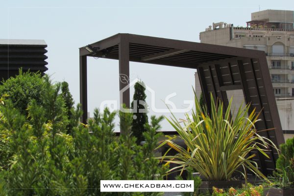 مرحله دوم: ایده پردازی و تهیه نقشه های طراحی روف گاردن، متره و برآورد هزینه ساخت روف گاردن و گرفتن تاییده از کارفرما؛ در طراحی روف گاردن از عناصری همچون آلاچیق و فلاورباکس چوبی استفاده گردید.