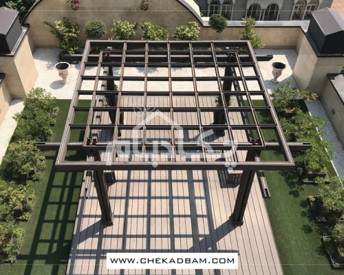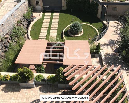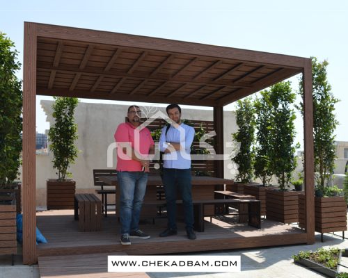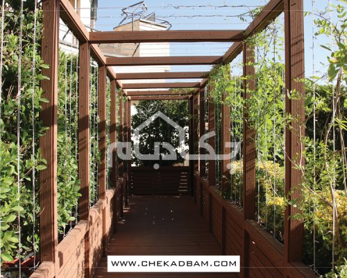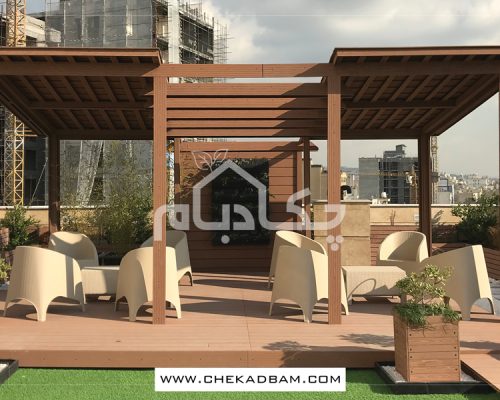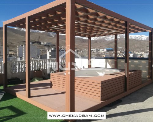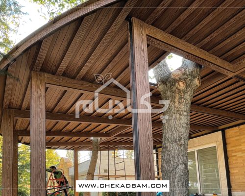 - آلاچیق چوب پلاست طرح موج