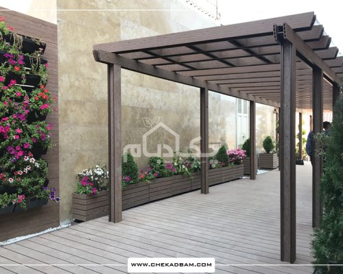 پرگولا هایی که با این متریال ساخته می شوند اغلب دارای ستون هایی فلزی هستند که با چوب پلاست کاور می شوند و برای شبکه مسقف بنابه سلیقه کارفرمای محترم می توان از چوب پلاست به تنهایی و یا ترکیب آن با فلز استفاده کرد.